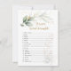 This design features a watercolor illustration of green and gold foliage - Baby Shower Word Scramble Game. On the top of the card - gold effect confetti. Unscramble the baby words. The Answer Key: Baby Powder, Bottle, Blanket, Diapers, Lullaby, Car Seat, Thermometer, Shampoo, Pacifier, Rattle, Bassinet, High Chair, Baby Monitor, Stroller, Nursery