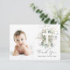 Baby Photo Thank You Baptism/Christening Card. This design features an illustration of green and gold foliage in watercolor style. On the green foliage there is an image of a Cross.