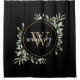 Greenery Foliage Gold Monogram Chic Script Black Shower Curtain