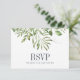 The RSVP card features green leafy foliage and your details written in a beautiful font. Perfect for a spring garden/outdoor wedding theme. Change the font size, style, and color by clicking on the 'Customize' button. Reword the wedding invitation to fit your personal style. Matching items are available.