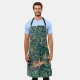 GREENERY,FOREST ANIMALS Hares ,Green Floral Apron