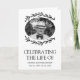 White folded funeral program with elegant black fonts. On the cover, a photo of your loved one along with their name and years living. Inside you can write the obituary and program. On the back you can add acknowledgements. Folded celebration of life program personalized with an oval photo of your loved one framed by greenery.