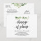 This is the modern summer greenery garden, in Black font, Wedding party invitation Rescheduled (Change of plans) postcard. It is the perfect and elegant way to make the reschedule announcement to your friends and family.