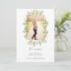 Trendy sage green and white watercolor pregnancy announcement photo card with gold geometric frame. A portrait shaped photo is recommended.