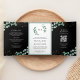 Greenery Gold Eucalyptus Black QR Code Wedding Tri-Fold Invitation