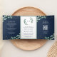 Greenery Gold Eucalyptus Navy Blue QR Code Wedding Tri-Fold Invitation