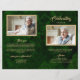 Funeral memorial program featuring on the front a photo of the deceased, thier name, dates, the memorial venue, date of the event, and elegant gold frame. On the inside is an obituary, and order of service; and on the back another photo, a thank you note and the second venue for after the funeral.