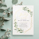Modern greenery baby shower invitation featured rustic watercolor botanical foliage greenery and real gold foil leaves and geometric frame, simple and elegant.