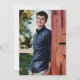 A golf themed graduation party invitation in white and green with greenery and a golf ball and crossed golf clubs. Add a photo of the graduate to the back.