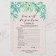 This greenery "how well do you know the bride" game is perfect for a rustic leaf or woodland theme bridal shower. The front of the game card features "how well do you know the bride", and the back of the card features "what's in your purse". The design features a beautiful green bouquet of leaves and branches with white anemone flowers and an elegant calligraphy script font on a cream beige background. Personalize the front of the card with the brides name and wedding shower date. Designed with Care by Miriam at Fresh & Yummy Paperie. For coordinating items, please visit my Zazzle store: