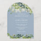 Greenery Lights Arch Dusty Blue QR Code Wedding Invitation
