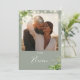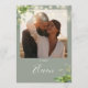 These elegant botanical greenery floral string lights wedding table numbers can be personalized with your photo and table numbers in chic typography on a sage green background. The cards are printed on the front and back (double-sided). Designed by Thisisnotme©