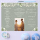 This elegant wedding trifold program features floral greenery and string lights on a sage green background. Designed by Thisisnotme©