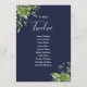 These elegant botanical greenery floral wedding table numbers can be personalized with your guests' seating plan set in chic typography on a navy blue background. The cards are printed on the front and back (double-sided). Designed by Thisisnotme©