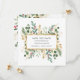This stunning Christmas wedding save the date features holiday greenery and leaves with faux gold leaves and red holly berries, and a center gold frame on a modern white background. Your personal photo goes on the back, surrounded by another gold geometric frame with winter greenery.
