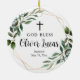 Greenery Personalized Baptism Ceramic Ornament. Personalized Cross Ornament- Baptism Gift