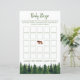 Watercolor green pine trees and bear cub baby shower "baby bingo" card. Customizable!