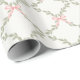 This cute wrapping paper showcases a delicate and elegant pattern featuring interlocking greenery motifs arranged in a lattice grid. Each intersection of the lattice is complemented by a soft pink bow.