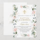Greenery Pink Flowers Baptism 1st Birthday Party Invitation
