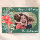 Greenery Red Foliage Botanical Modern Oval Photo Holiday Card