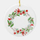 Greenery Red Wreath First Christmas Engaged Custom Ceramic Ornament