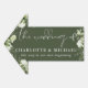 This elegant olive green greenery floral wedding direction sign can be personalized with your information in chic lettering. Designed by Thisisnotme©