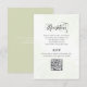Elegant greenery wedding reception enclosure card featuring soft botanical floral accents and romantic script typography. This minimalist design includes a convenient QR code for guests to quickly RSVP online or view your wedding details. Perfect for garden weddings, spring or summer celebrations, and couples seeking a timeless yet modern invitation suite. Easily personalize with your wedding website, names, and event details to create a seamless guest experience.