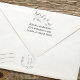 This design features a wedding return address simple self inking stamp with an elegant greenery foliage leaves leaf, minimalist minimal elegance style, stylish trendy simple typography text, wedding invitation accessories, wedding invitation mailing supplies, a botanical garden leaf design, a simplistic elegance creative artwork, with a simple block style lettering font, with bride and groom names