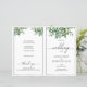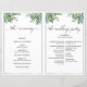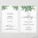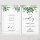 This foldable wedding program features lush greenery and a faux silver border which will complement many wedding themes. Designed to be printed on both sides and supplied flat for you to fold, the cover shows the venue whilst the inside can be edited with the ceremony and wedding party. This modern design with silver borders is suitable for a religious church memorial service or a humanist ceremony. The FAUX silver foil effect is printed and is NOT metallic. The foliage was painted here in our studio and is therefore unique to the Stationery Concierge
