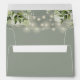 Featuring pretty floral greenery and pretty string lights on the inside of the envelope, this elegant return address envelope can be personalized with your names and address details in chic white lettering on a sage green background. Designed by Thisisnotme©