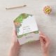 Rustic greenery succulent all in one wedding invitation with an easy to tear off perforated RSVP postcard.