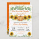 Greenery Sunflowers Fall Pumpkin First Birthday Invitation