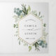 This all in one tri-fold wedding invitation features painted watercolor eucalyptus, green leaves, flowers with a faux gold geometric hexagon frame, add wedding details, rsvp, and your photo. For more advanced customization of this design, please click the "customize further" link. Matching items are also available.