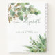 A beautiful and inspiring monogrammed notebook featuring soft watercolors of light green eucalyptus leaves and greenery with gold accents. You can personalize with your name in a trendy script with swashes and add a subject line of text in minimal typography.