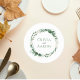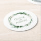 Add a refined and personalized touch to your reception with this elegant greenery wedding coaster. Featuring a soft botanical wreath of eucalyptus, ferns, and delicate foliage, this circular design beautifully frames your names in a clean, modern type style. The airy greenery and subtle sage tones create a timeless, romantic look that complements garden, outdoor, and classic wedding themes. Perfect for place settings, cocktail hour, or bar decor, this coaster doubles as both a functional detail and a meaningful keepsake for guests. Easily customize with your names or special wording to match your wedding aesthetic.