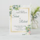 Featuring soft eucalyptus leaves, delicate floral accents, and a sophisticated gold frame, this design blends modern simplicity with romantic charm. The clean layout ensures your details stand out beautifully while maintaining a luxurious aesthetic.
