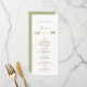 Celebrate your wedding day with this elegant greenery-themed menu featuring each guest's name in romantic script and a gold rope heart accented with watercolor eucalyptus. The clean, minimalist layout and soft neutral background make it ideal for modern rustic, botanical, or garden weddings. Subtle gold typography and leafy accents add warmth and charm while doubling as a personalized place card. Easily customize the menu and guest name for a thoughtful and stylish finishing touch to your reception tables.