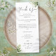 An elegant floral greenery wedding celebration thank you reception card. Personalized with your special thank you message set in stylish typography. A special keepsake thank you for your guests. Designed by Thisisnotme©