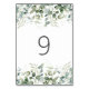 Stylish wedding table number. Featuring a pretty eucalyptus greenery border on a clean white background.