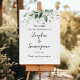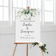 Capturing Love: Wedding Welcome Sign with Elegant Black Calligraphy and Greenery