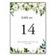 Greenery White Autumn Floral Calligraphy Wedding Table Number