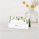 This greenery white autumn floral wedding place card is perfect for a rustic wedding. The design features elegant watercolor white peonies with green foliage.