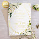 Greenery White Floral Geometric Wedding Real Gold Foil Invitation