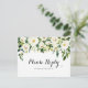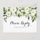 This greenery white floral menu choice rsvp postcard is perfect for a rustic wedding. The design features elegant watercolor white peonies with green foliage.