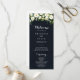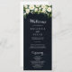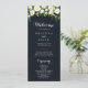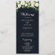 This greenery white floral royal blue wedding program is perfect for a rustic wedding. The design features elegant watercolor white peonies with green foliage in a dark blue background.