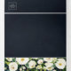 This greenery white floral royal blue trifold wedding invitation is perfect for a rustic wedding. The design features elegant watercolor white peonies with green foliage in a dark blue background.