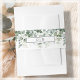 Stylish wedding invitation belly bands, features eucalyptus greenery foliage on a clean white background and customizable monograms.