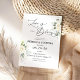 Plain white envelopes are included with paper invitations and will come to fit the invitation size you select. If you don’t need the envelopes, you may choose to not receive them by selecting the dropdown below "Envelopes" and choosing "None." If you’d like to have a design on your envelopes, you can browse all of these available envelopes to find the design that complements your Greenery White Roses Bridal Shower Invitation.