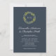Greenery Wreath Monogram Dark Teal Blue Wedding Invitation