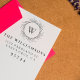 This elegant botanical themed return address rubber stamp features a hand-drawn wreath made from greenery leaves with a monogram placed inside it, a serif typography displays your return address details and family name. To customize this design, simply click on "Personalize this template" and take home the perfect design to use on your mail! Available with 5 different ink pad colors.